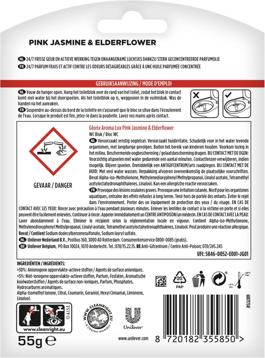 Glorix Aroma Lux Pink Jasmine & Elderflower Toiletblokken – 9 Stuks – Voordeelverpakking