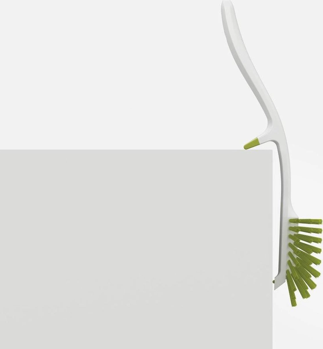 Met de afwasborstel Edge van Joseph Joseph was je eenvoudig al jouw vuile vaat af! Dankzij de harde haren zijn jouw vuile borden in een mum van tijd schoon en de geïntegreerde panschraper zorgt ervoor dat ook jouw pannen zo schoon zijn. Na gebruik hang je de borstel eenvoudig via de gootsteensteun op aan de gootsteen. Hierdoor loopt het overtollige sop en water makkelijk weg in de gootsteen. Jouw afwasborstel is hiermee niet alleen snel schoon, maar bespaart ook nog eens ruimte! Ben je op zoek naar een andere kleur? De afwasborstel is ook te koop in het wit!